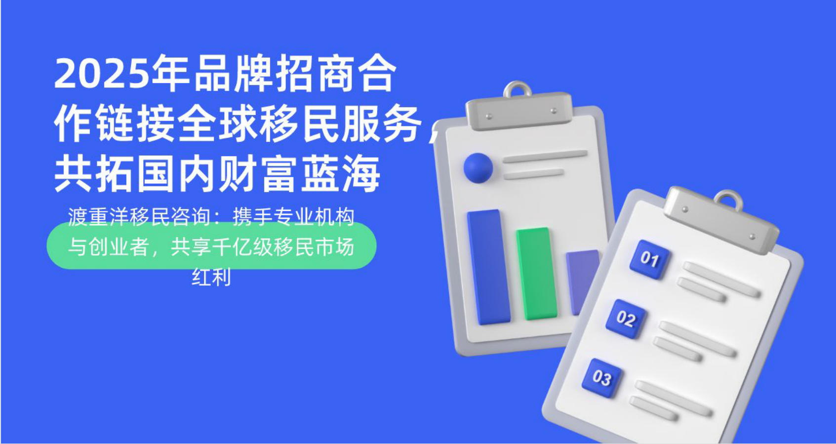 随着国内高净值人群全球化布局需求升级、精英家庭子女海外教育规划加速,移民服务市场正迎来爆发式增长。然而,优质海外移民法律资源的稀缺、跨文化服务的壁垒,让众多国内合作伙伴面临 “有需求难对接、有资源缺专业” 的困境。渡重洋品牌,作为深耕 [热门移民国家/地区,如美国、加拿大、澳大利亚、欧洲申根国等] 移民法律领域 [多年] 的专业机构,现面向国内开启招商合作,邀您共享千亿级移民服务市场红利,以专业赋能合作,以资源成就共赢。